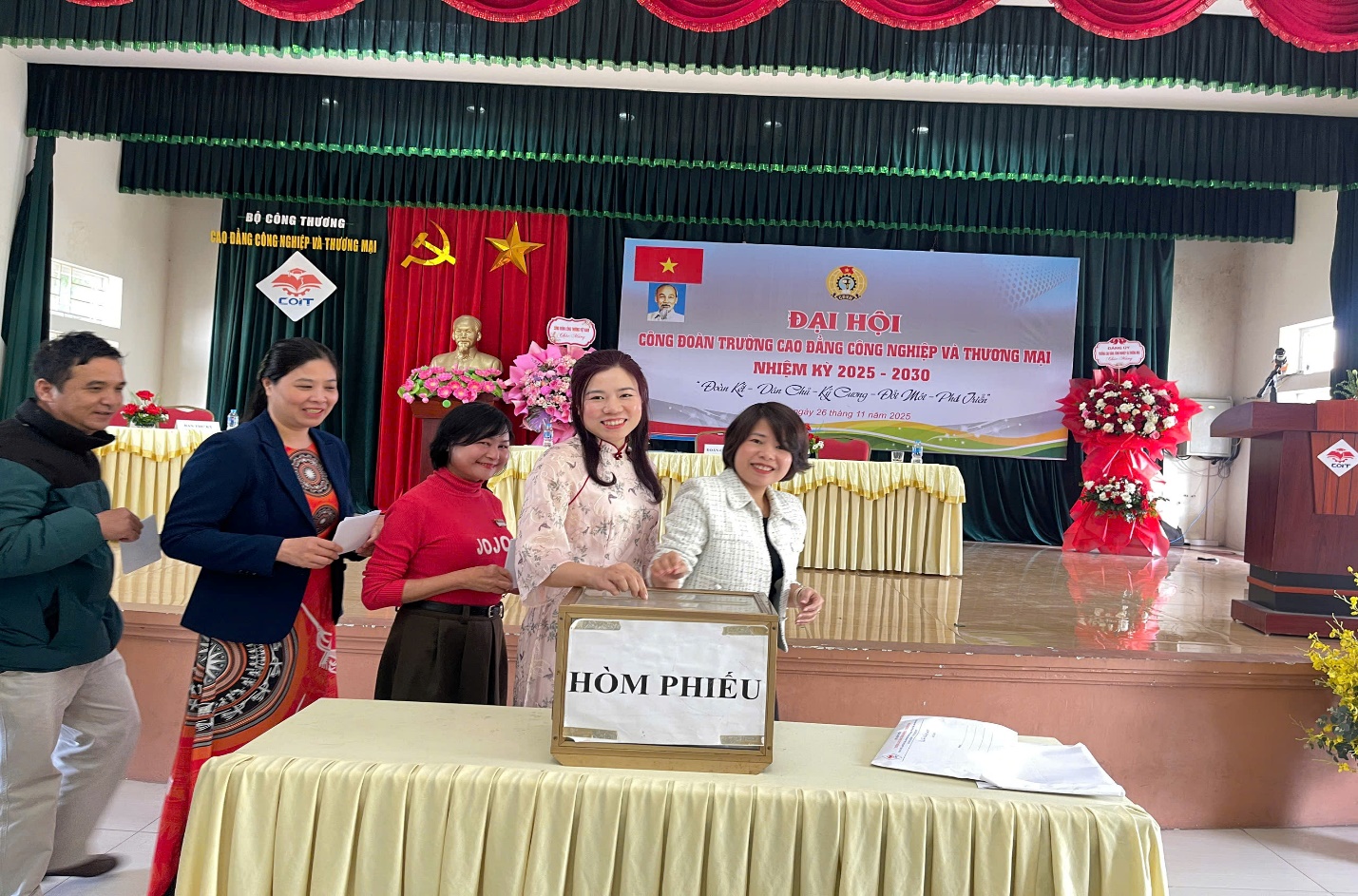 Sau thời gian làm việc khẩn trương, dân chủ, nghiêm túc, Đại hội Công đoàn Trường Cao đẳng Công nghiệp và Thương mại khóa X, nhiệm kỳ 2025–2030 đã thành công tốt đẹp. Đại hội thông qua Nghị quyết với sự thống nhất cao, thể hiện quyết tâm của toàn thể đoàn viên trong việc xây dựng tổ chức Công đoàn ngày càng vững mạnh, đồng hành cùng Nhà trường trong thực hiện nhiệm vụ đào tạo nguồn nhân lực chất lượng cao.